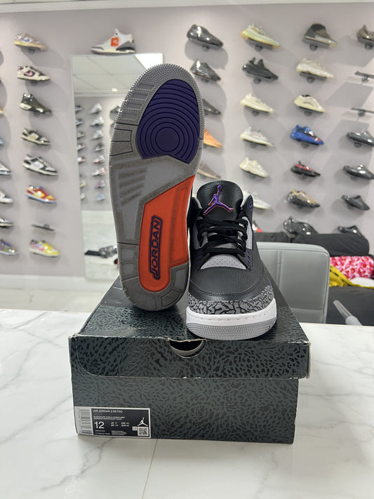 Jordan 3 Retro Black Court Purple (PREOWNED)